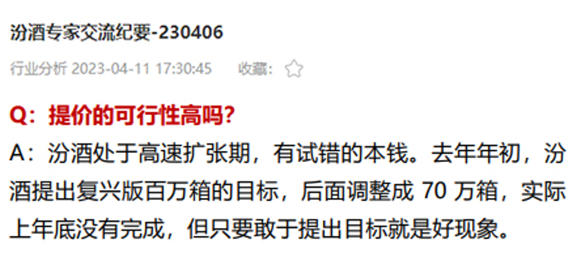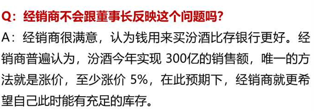 目前,经销商普遍认为,汾酒今年要实现300亿的销售额,唯一的方法就是涨价,至少涨价5%。