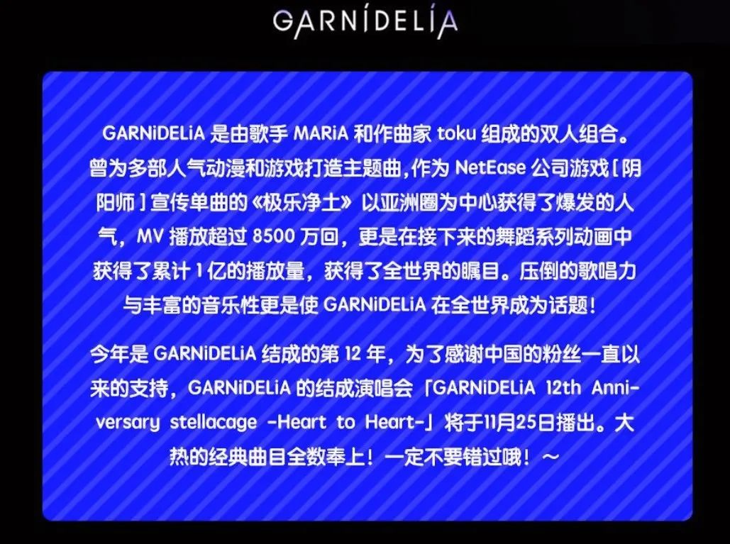 尽管GARNiDELiA成立已经10年,且于2014年签约Sony音乐出道,但放眼庞大的日本音乐市场,其只是一个小有名气的组合。相较之下,《极乐净土》这首歌在中国以及亚洲其他国家和地区的火爆程度却远远超过了组合本身。尤其是2016年二次元在中国还是一种相对小众的文化,《极乐净土》的影响力却不限于二次元爱好者,更进入过公众视野,这就不能不提到同年更火的一款游戏《阴阳师》。