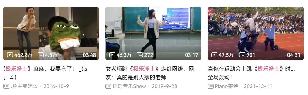 随后几年间,不少学校运动会、企业年会上,《极乐净土》都是年轻人选择的热门表演曲目。这些或许并不认识GARNiDELiA也毫无舞蹈基础的年轻人,却可以跟着旋律沉浸在《极乐净土》欢快的舞步中,这就是宅舞的魅力吧!