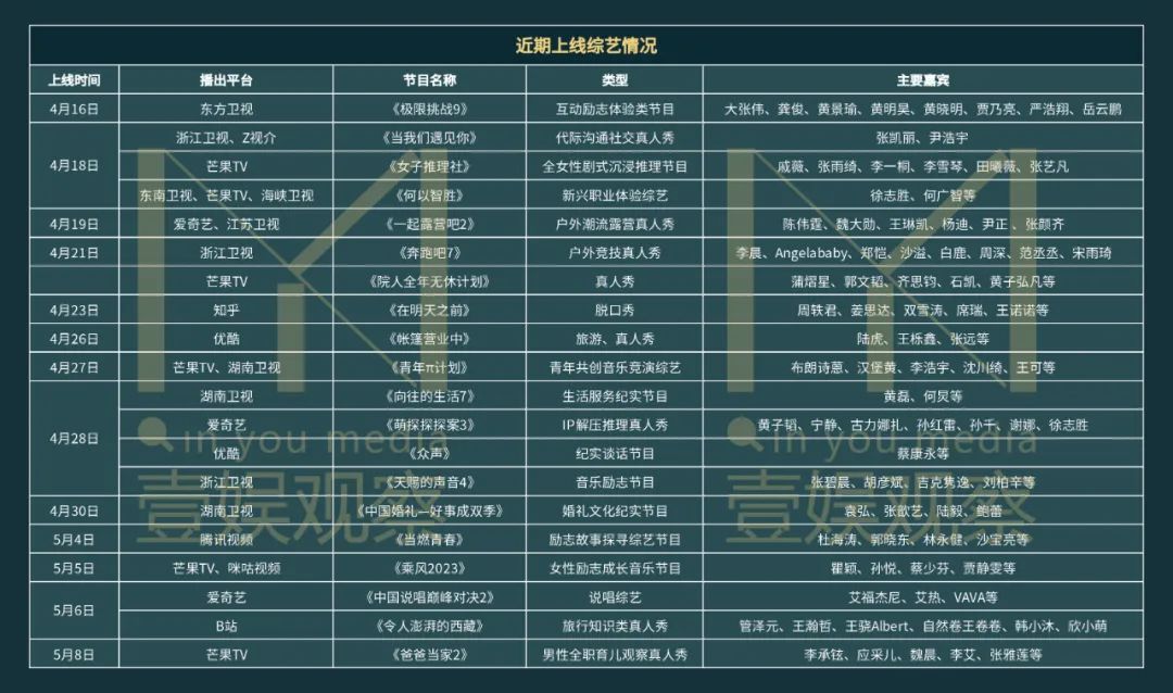 五一假期前,不少综艺纷纷官宣定档,并随后播出,而这也拉开了五一档与整个五月综艺市场“繁荣”的序幕。