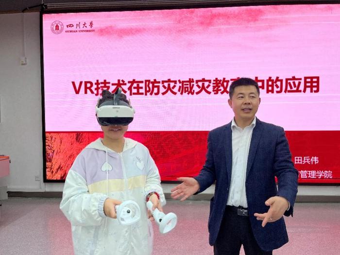 田兵伟副教授在灾后重建与管理学院以“VR技术在防灾减灾教育中的应用”为主题开展了讲座,重点介绍了VR技术在防灾减灾中的应用,包括地震、火灾、洪水、飓风等自然灾害的模拟等,并结合经典案例介绍VR技术在安全教育中的优势,帮助大家学会自主利用VR资源学习安全知识,VR技术进行应急演练和培训,提高安全意识,将所学应用于实际生活。他的讲座独特新颖、生动形象,广受学生喜欢。