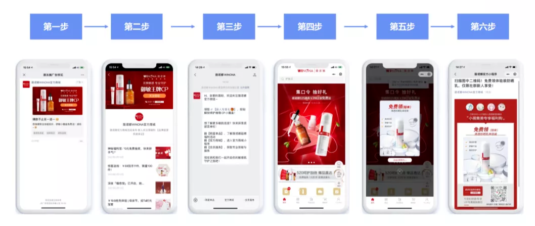 2017年起,贝泰妮旗下薇诺娜品牌基于微信小程序搭建了“专柜服务平台”和“小程序商城”,通过线下门店的扫码引导和线上两微一抖等的广告跳跃进入专属私域小程序,将微信作为主要阵地,通过企业微信和微信社群重点运营与消费者之间的沟通连接,辅以拉新裂变、会员加购、种草试用等方式,为薇诺娜的私域池里不断带来流量价值的升华。