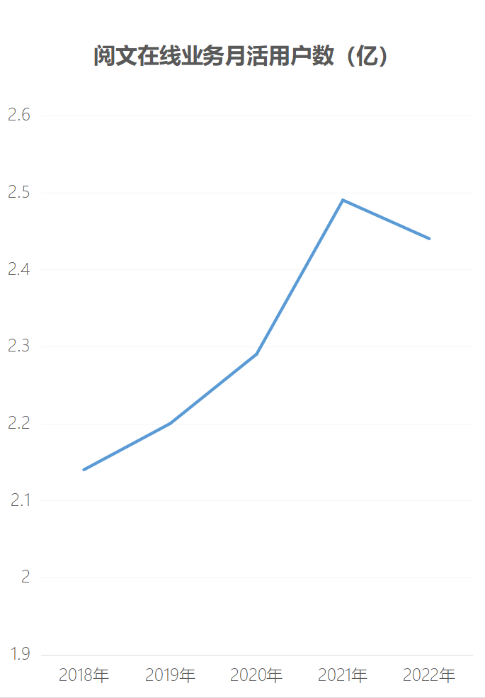 其中月活用户2020年、2021年和2022年分别为2.29亿、2.49亿和2.44亿,网络文学用户保持基本稳定,变动幅度都不大,但是付费用户规模一直在萎缩。2020年、2021年和2022年分别为1020万人、870万人和790万人,这个数据反映出下降的幅度还是比较大的。