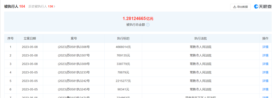 同日,常熟每日优鲜电子商务有限公司被常熟市人民法院多次列为被执行人。其中,执行案号(2023)苏0581执3309号的相关案件,执行标的为33.88万元。案号为(2023)苏0581执3307号的相关案件,执行标的为76.91万元。案号为(2023)苏0581执3306号的相关案件,执行标的为466.80万元。