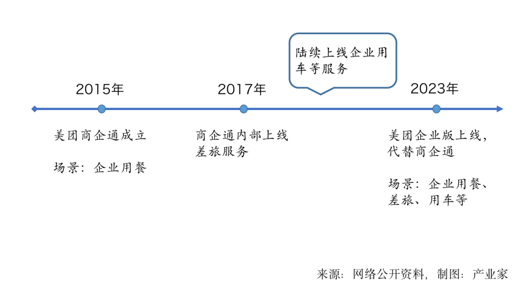 2015年,美团商企通正式成立,最初的场景仅限于商务招待用餐和员工福利用餐,这也是美团在C端最核心的场景。在商企通负责人宋词的印象中,“当时有客户主动找过来,问我们能不能提供企业用餐的解决方案,帮企业实现消费透明,简化员工报销流程”。