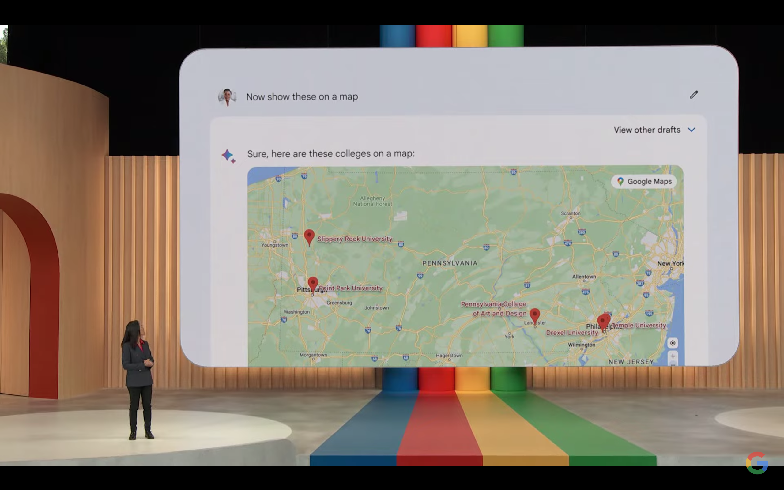 在I/O大会现场,Bard有两项功能演示获得了分贝最高的欢呼声,第一次来自Bard的深色模式更新,第二次是因为Bard的新晋搜索功能与谷歌地图形成了完美整合。