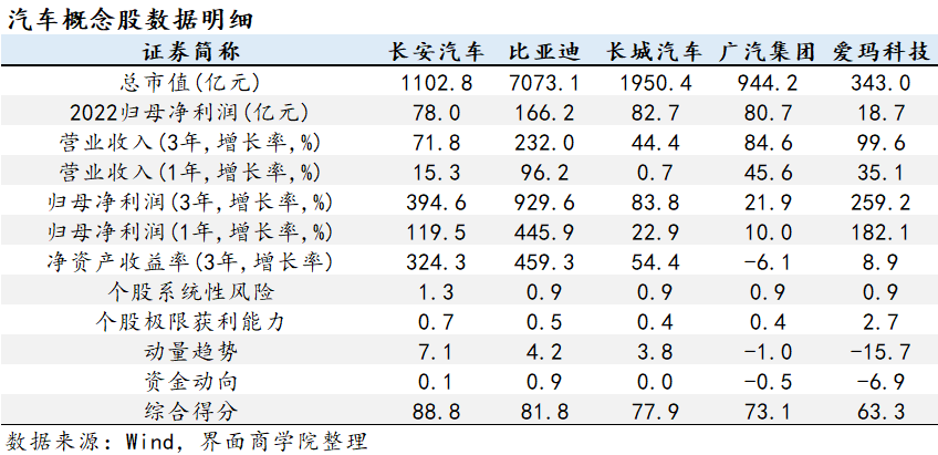 首先,界面商学院通过Wind数据筛选汽车概念股,最终选定个股数量为35只。