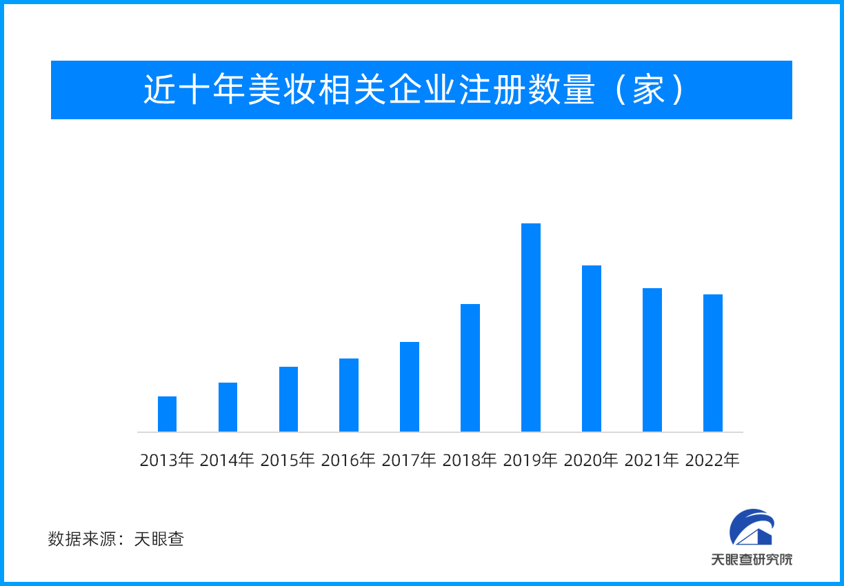 天眼查数据显示,截至目前,我国现存美妆相关企业80.5万余家,其中,2022年新增注册企业8.8万余家,新增注册企业增速12.7%;