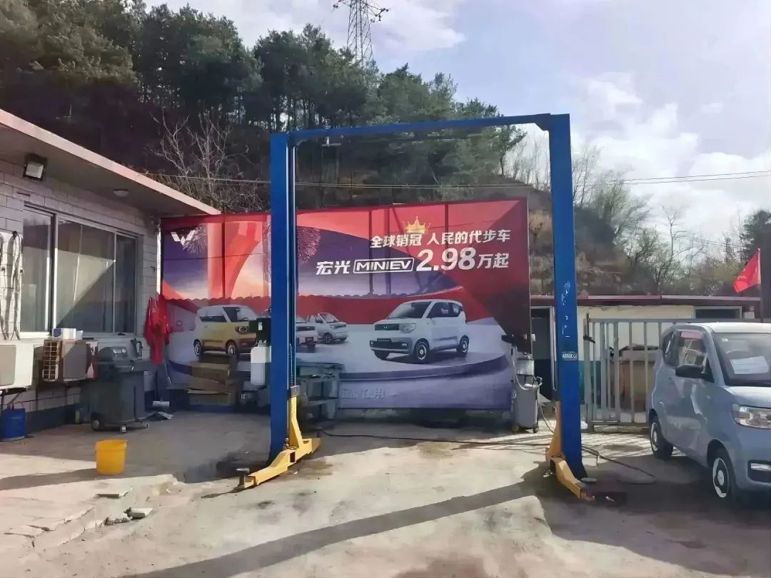 在距离兴隆县二手车市场不远的郊区,五菱宏光开了一家专卖店,风格很符合其“中国最下沉的新能源车”的定位——一处农家院落,露天摆放着一些车,背后就是裸露着石块的山体,看起来很接地气。仔细一看,店里除了五菱其实也还卖宝骏。