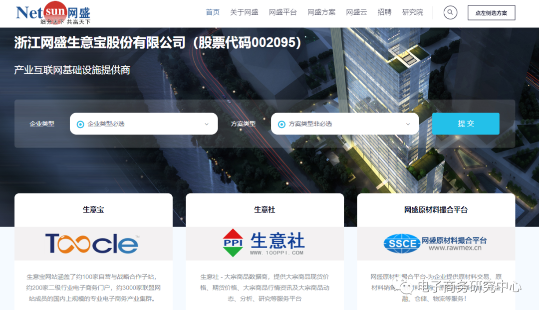 据介绍,网盛生意宝是一家专业从事互联网信息服务、电子商务、专业搜索引擎和企业应用软件开发的高新企业,也是国内最大行业电子商务运营商和领先的综合B2B运营商之一。