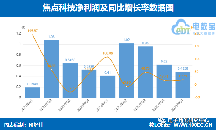 4月29日,焦点科技发布2023年一季度报告。报告显示,一季度焦点科技实现营业总收入3.46亿元,同比下降0.51%;归母净利润4858.44万元,同比增长19.79%;扣非净利润4647.24万元,同比增长29.85%。