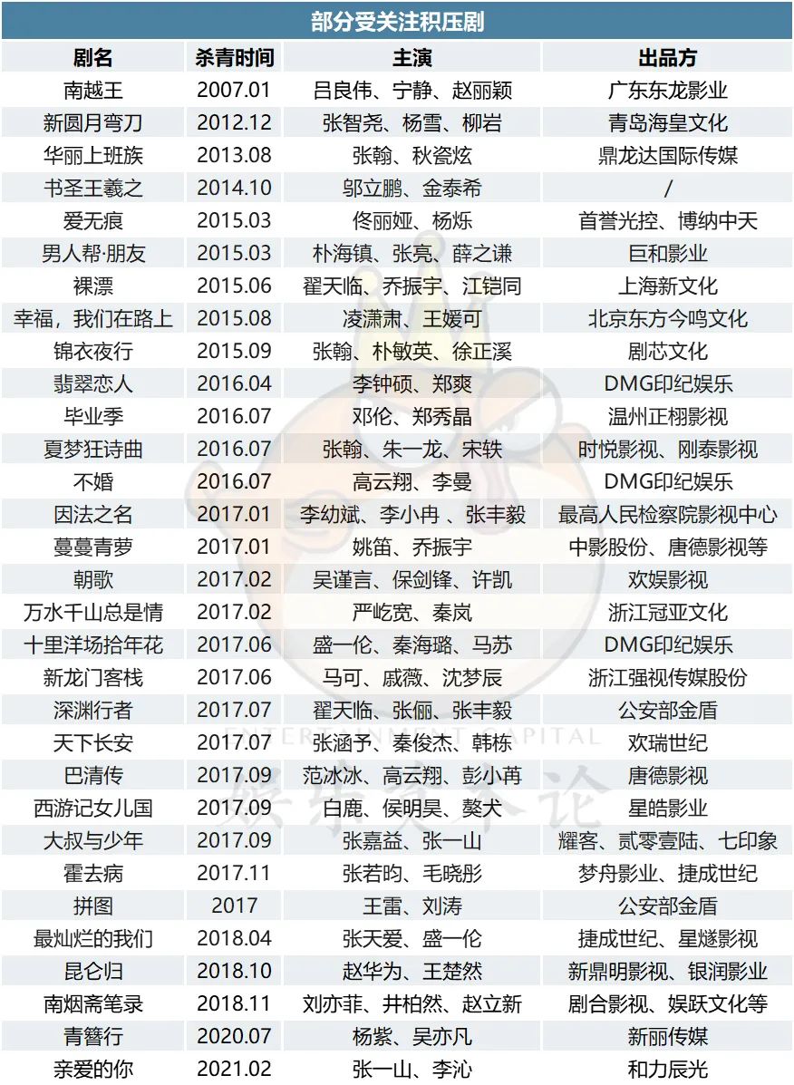 从2017年明确开始影视剧精品化之后至今五年,尤其是每年产量骤降的近三年,影视行业热钱撤退、泡沫消散,除了审查红线、临时改变的政策问题、劣迹艺人影响这几大问题之外,积压剧产生的几率也越来越低,数量也越来越少。