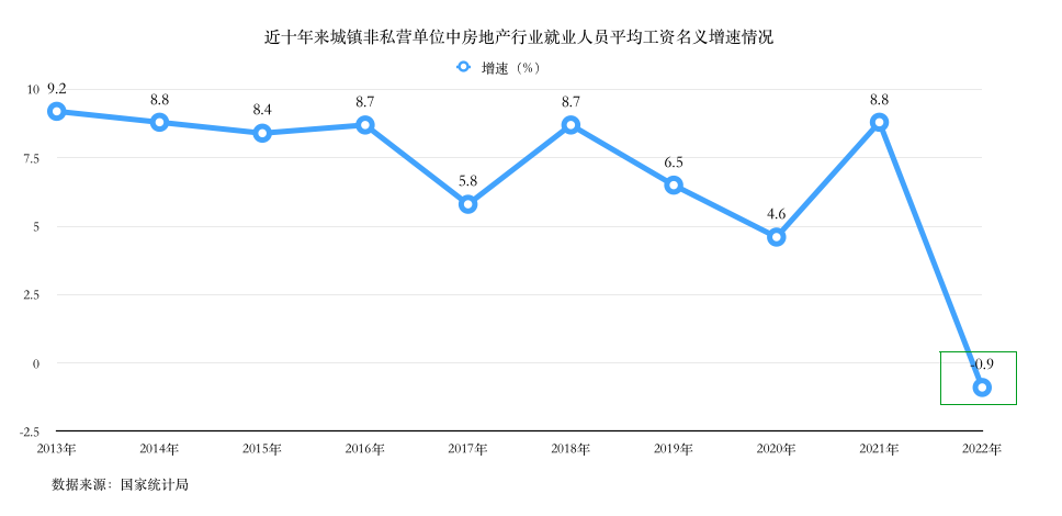 疫情冲击、部分民营房企“暴雷”,2022年我国房地产市场经历深度调整,房地产地产业也成为唯一平均工资下降的行业。