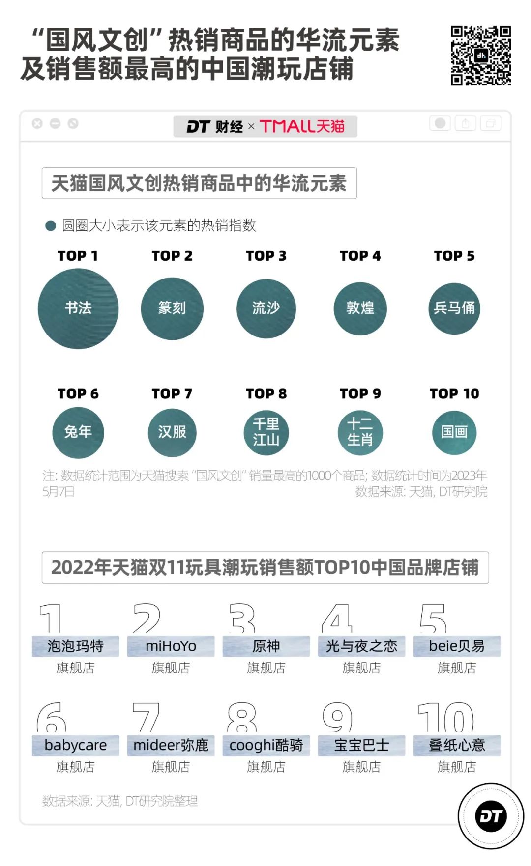2023年,第七个510中国品牌日,天猫510世界华流大赏发布国风文创、传统精作、东方美学、意境东方、服章之美、中式滋养、成分之道、科技人文8大华流关键词,DT财经从四个角度对上述趋势进行归纳,总结出以下4条华流消费新趋势。