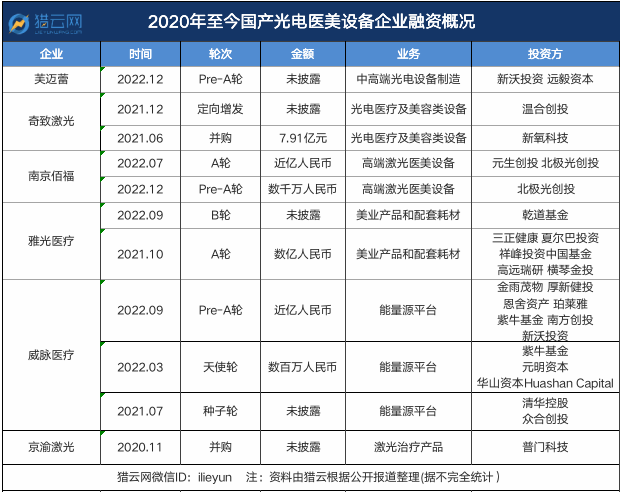 随着一批拥有自主研发和技术创新能力的优质本土企业涌现,投资人也收获了更多可供选择的标的,资本开始在光电医美领域密集押注。