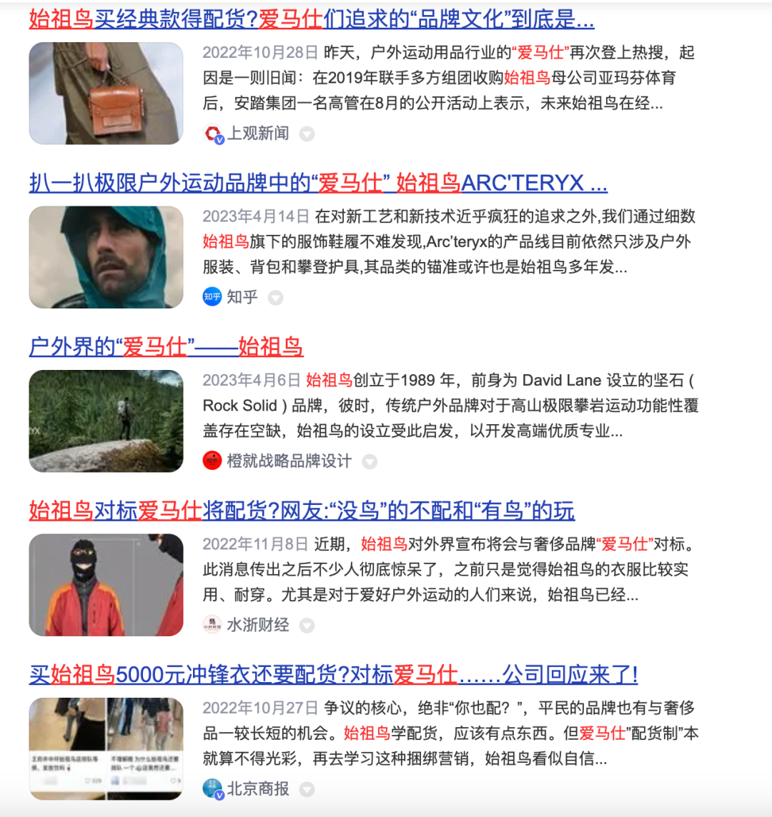 始祖鸟一度传出要学爱马仕配货,结果迅速被汹汹舆情掐断苗头。这就是高端化品牌走大众化路线的必经之路——跌落神坛,人人踩上一脚。