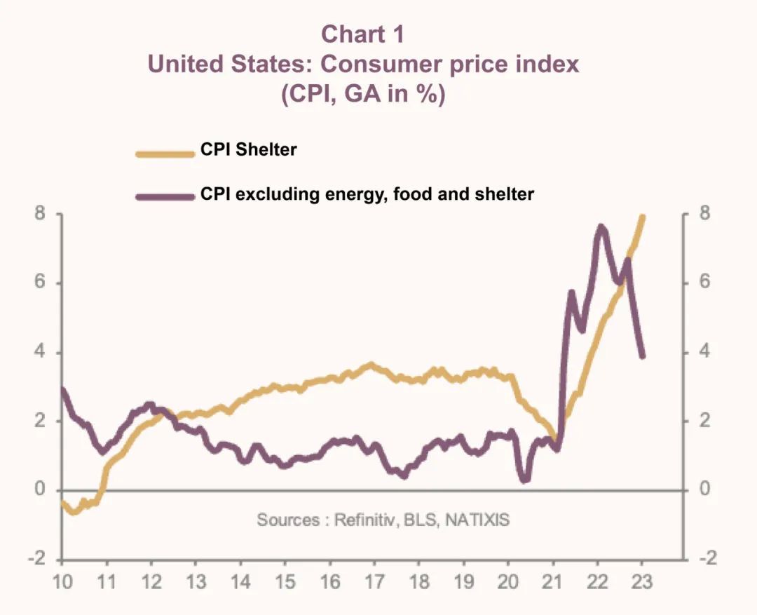 因此,如果租金的涨跌与房价涨跌的时间框架相同,则房租(实际和估算)将于2023年下半年开始趋于稳定甚至下跌。各国在计算真正的通货膨胀,即“核心通货膨胀”时,会剔除能源、食品价格,以及租金上涨的影响。考虑到各国对租金的计算方式大相径庭,对核心通货膨胀的衡量有利于各国之间进行比较。