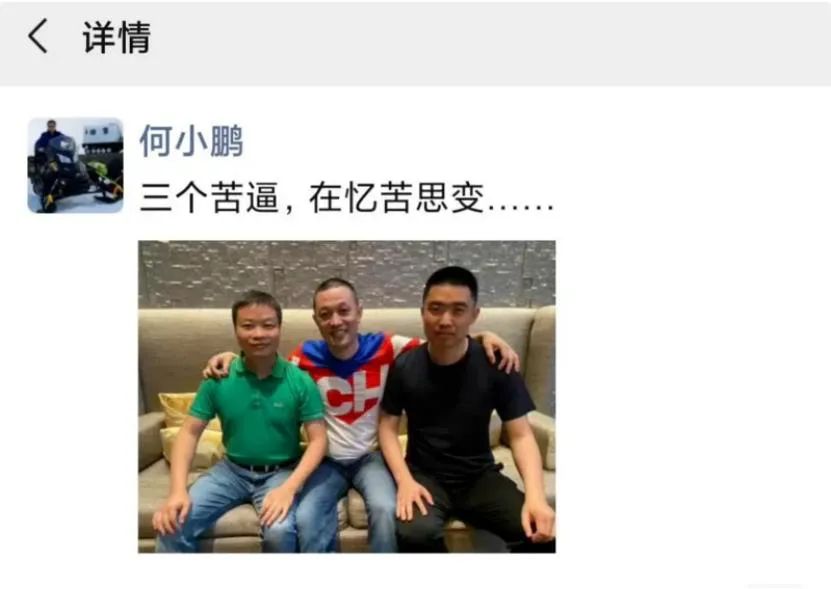 2020年6月,小鹏汽车CEO何小鹏在朋友圈po出一张与李斌、李想并排而坐的合照,照片中,李斌坐在正中间,一手搂着何小鹏,一手搂着李想。文案写到,“三个苦逼,忆苦思变”。