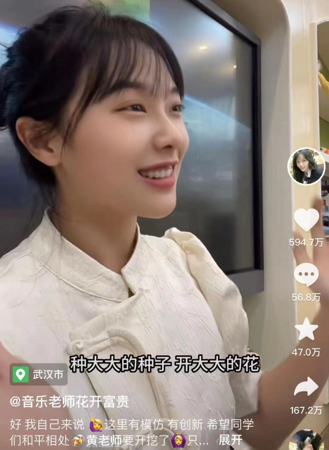 黄老师:有的。随着爆红和被网暴后,这也打破了我原来的生活跟工作,也是挺受伤的,但是这也是我说的,承受繁华带来的荣耀,背后也要承受与之而来的是非。随着现在慢慢平静下来了,我还是会坚持自己的初心和生活,继续做一个奥尔夫音乐教学的推广者和老师。闲暇之余,也会继续参与到音乐公益等各种的活动中来。一些坚持的东西不会变。