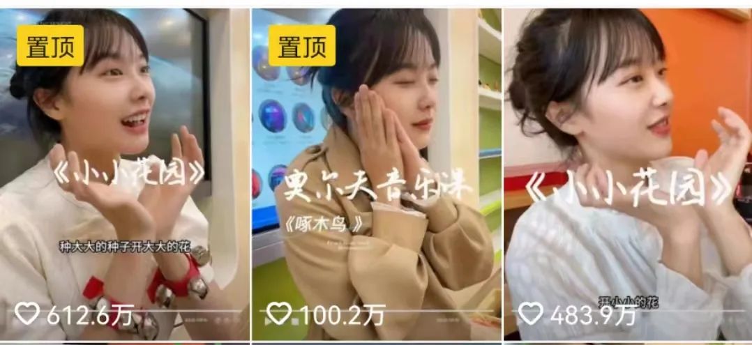 但在这之前,不少人只是单纯喜欢这首儿歌。人们的喜爱,从点赞和播放数上就可以看出来,在黄老师的这首“挖呀挖”的视频发布的一周内,点赞超过了600万,播放量更是达到了2亿。她也从一个过去的底部博主,一跃成为头部博主。