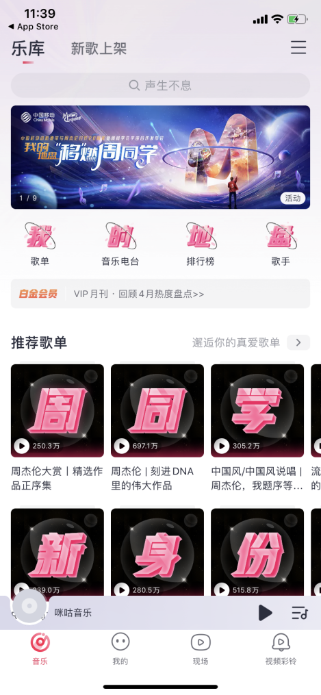 不知道是主动营销的影响还是用户自发的称呼,咪咕音乐总被戏称为“周杰伦播放器”。