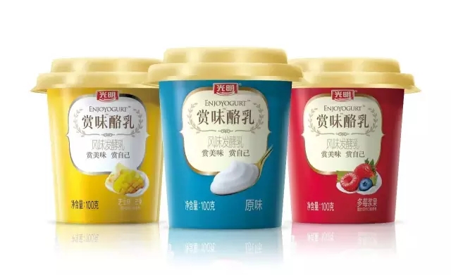 以常温酸奶莫斯利安突围的光明乳业最近上市了一款全新低温酸奶产品“赏味酪乳”。从名字也看得出,这款产品主打的是目前市场上热门的浓厚型果粒酸奶产品,目前推出的有原味、芝士味芒果和多莓浆果三种口味。