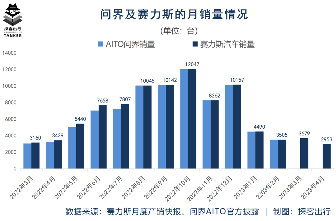 但从这一年多时间的单月销量来看,赛力斯汽车自从2022年8月开始连续三个月销量破万后,便开始出现了“乏力”的迹象。直到2023年4月赛力斯汽车的销量仅仅只有2953台,甚至不及2022年3月的首月交付数量。