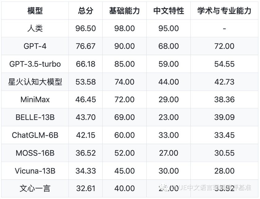 在这份榜单中,除了OpenAI 在 2022 年发布的 GPT-3.5 与 2023 年发布的迭代款 GPT-4 之外,排在第三位的,是刚刚发布的星火认知大模型,即科大讯飞星火大模型(下文简称「星火大模型」)。