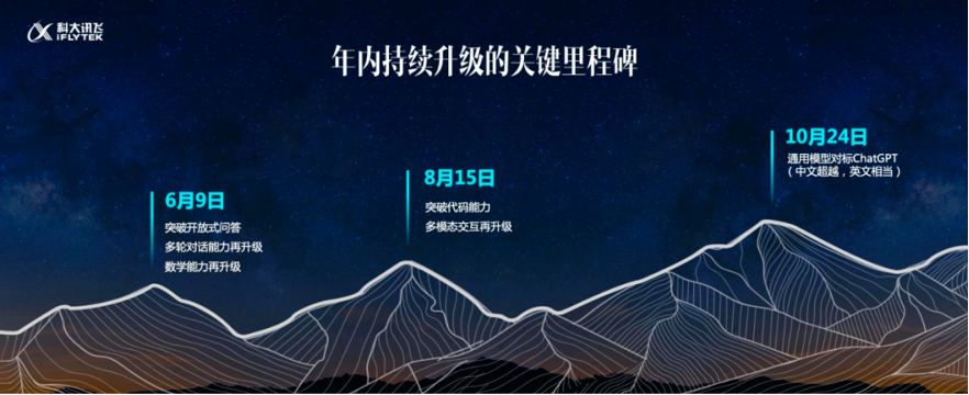 到8 月 15 日,星火大模型的代码能力会上一个大台阶,此时也将更加方便开发者、合作伙伴在企业内部使用,多模态的交互能力也将正式开放给用户。最终,在今年的 10 月 24 日科大讯飞全球开发者大会期间,星火大模型在英文环境下的能力,将能够全面对标 ChatGPT,同时在中文语境体验将完全超越 ChatGPT。