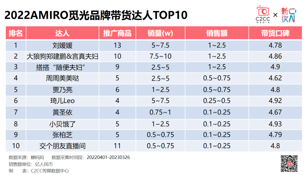 此后,觅光在短视频种草、达人直播、品牌自播等多方面全面发力,光是去年,其通过10位品牌达人带货的销售额便超过了10亿元。据蝉妈妈数据显示,去年觅光关联的达人数量便超过了900个,全面覆盖明星级以及头、腰、尾部。