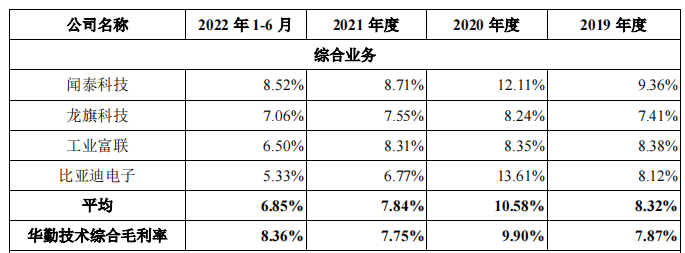 报告期内,华勤技术智能手机产品销售单价一直在200-400元/台之间波动。相较于高端智能手机,低端智能手机利润空间较小,智能手机又是公司第一大业务。因此,造成华勤技术毛利率低于行业平均毛利率。