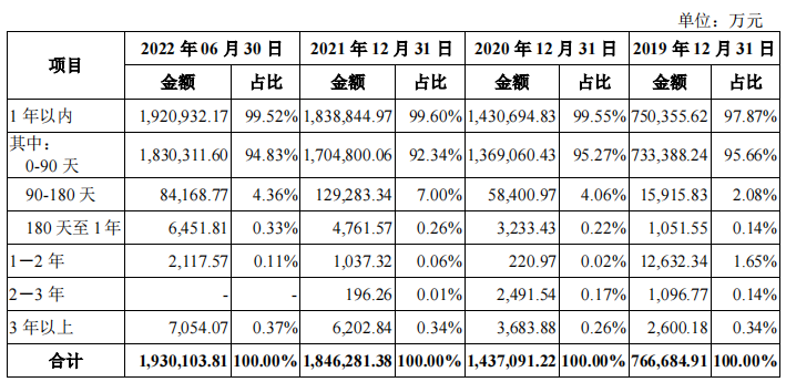 与庞大的应收账款相比,华勤技术计提的坏账比例较小。但从应收账款账期来看,华勤技术应收账款质量的确在下降,以2021年应收账款数据来看,华勤技术0-90天应收账款占比在下降,90-180天及180天至1年应收账款账期占比却在增加,这也表明华勤技术坏账风险的确在提升。