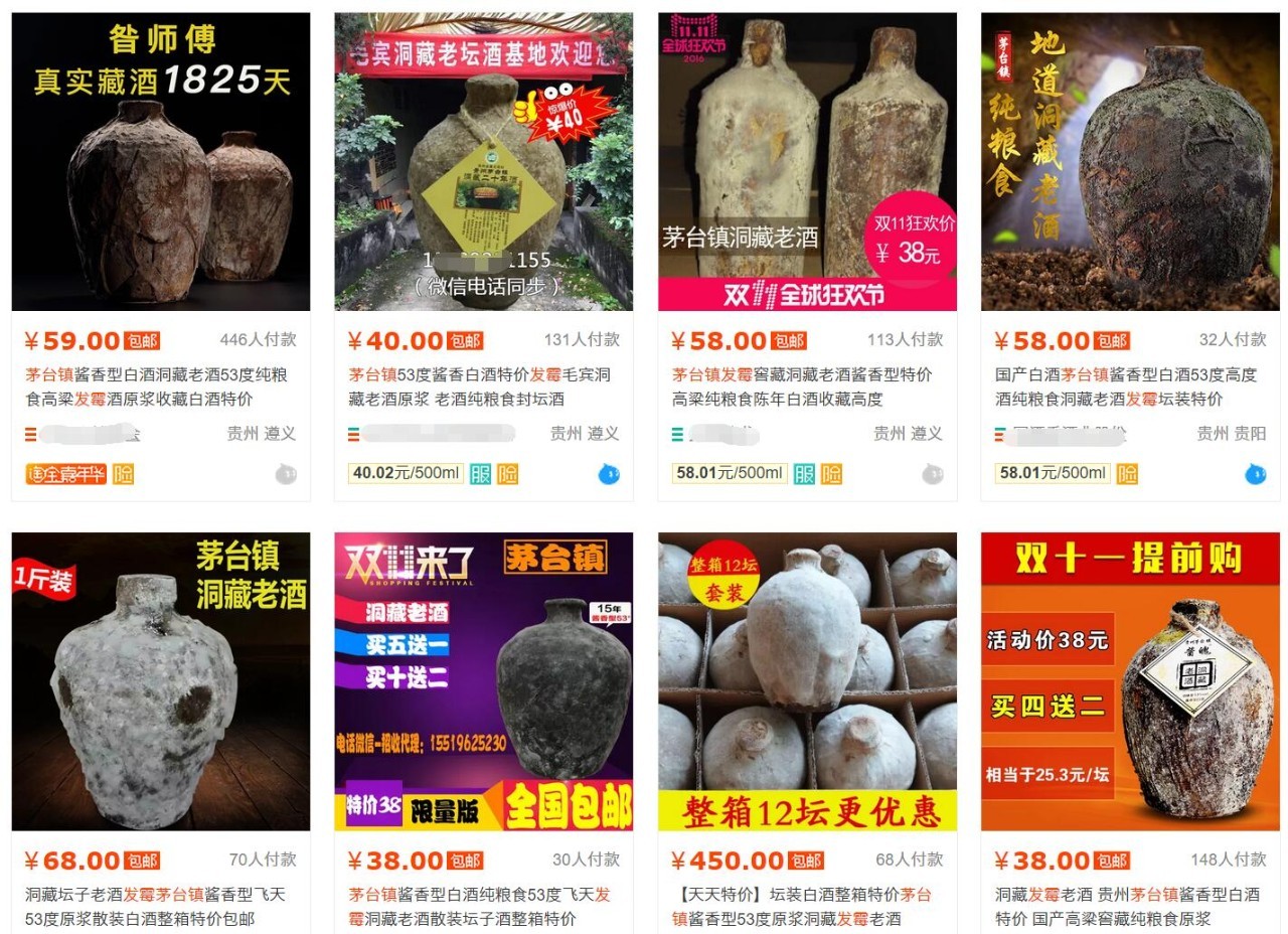 在某电商平台以及社交媒体朋友圈里,洞藏发霉“老酒”大行其道,折算下来价格38元、58元/斤左右,价格十分优惠,而这些商家宣称的“老酒”、“储存XX天”、“纯粮原浆”、“洞藏酒”倒出来后“颜色微黄、酒花丰富”,也是赚足了眼球,让很多受“酒是陈的香”熏陶的消费者误以为“长毛”是陈酿时间长的表现,从而乐意买单。