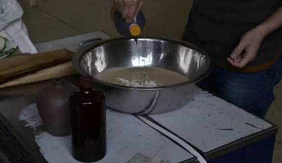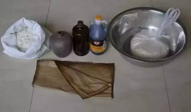 材料:食用面粉、酒坛子、食用酱油、皮纸、食用豆浆。