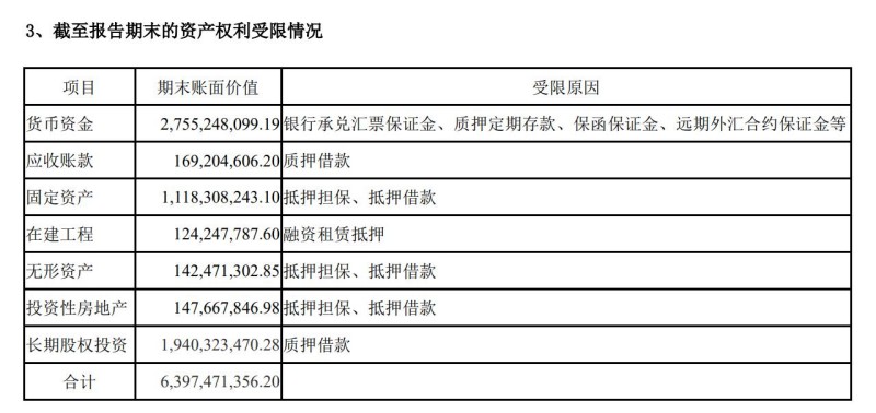 此外,包括货币资金在内,由于质押借款、抵押担保、抵押借款等各种原因形成的资产权利受限的金额合计达63.97亿元,占爱康科技2022年末总资产115.61亿元的55.33%,超过半数。