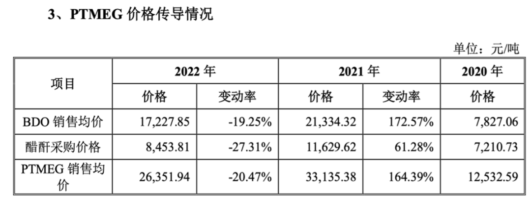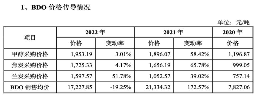 目前,蓝山屯河在最新回复函中说明原材料采购价格波动对公司的影响、公司向上游转移价格波动风险的能力时,称BDO、PBAT产品市场价格与原材料价格联动较小,故价格传导能力有限;PTMEG、PBT价格与原材料价格关系紧密,走势基本相同,故可以有效进行价格传导。