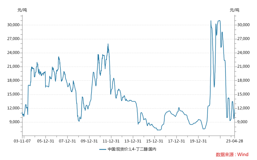 这段时间的价格暴涨,也被业内称为“BDO行业的10年价格‘神话’”,其均价达到25152元/吨,环比上涨171.8%,年内最高价看到了31000元/吨,直接刷新了近十几年的价格记录。