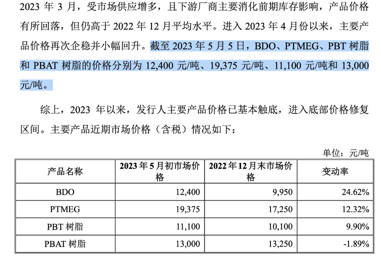 虽然蓝山屯河在最新的回复函中表示,截至2023年5月5日,BDO价格为12,400元/吨,但化工产品市场价格波动频繁,市场行情走势多变,其主要产品价格的波动仍具有较大不确定性。