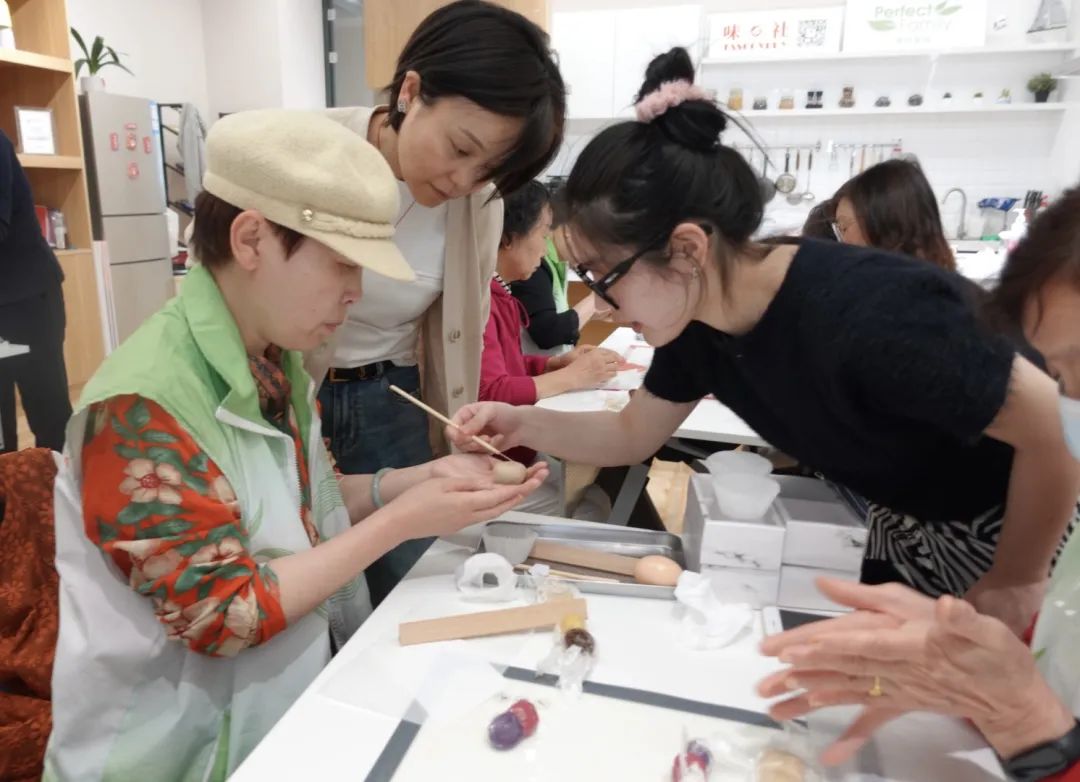 在东部党群服务中心的共享厨房里,高级西点培训师、Tascovery美食学校联合创办人倪静芬为大家普及了缘起于唐朝的我国传统糕点——唐果子,也被大家称为茶果子。