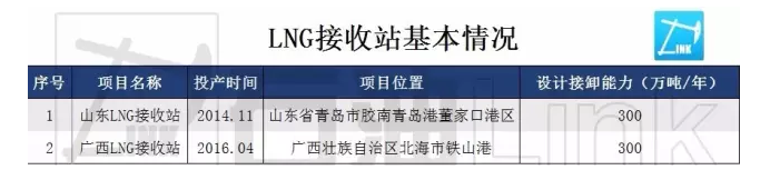 此外,中石化还公开了两座LNG接收站的信息。一座是山东LNG接收站,于2014年11月投产,位于青岛市胶南青岛港董家口港区,设计接卸能力为300万吨/年;另一座是广西LNG接收站,于今年4月投产,位于北海市铁山港,年设计接卸能力300万吨/年。
