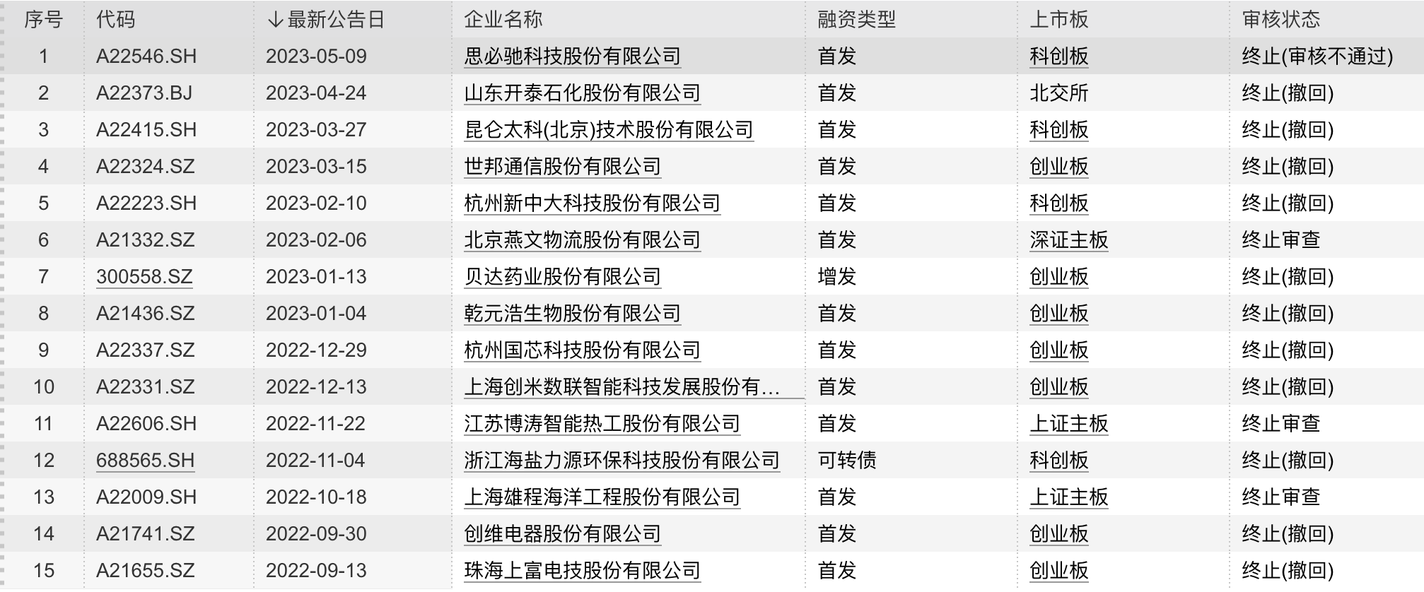 至于中信证券,项目终止于今年也不在少数,除了思必驰之外,2月份北京燕文物流股份有限公司,欲闯关深主板也失败了,今年共计8个项目终止。