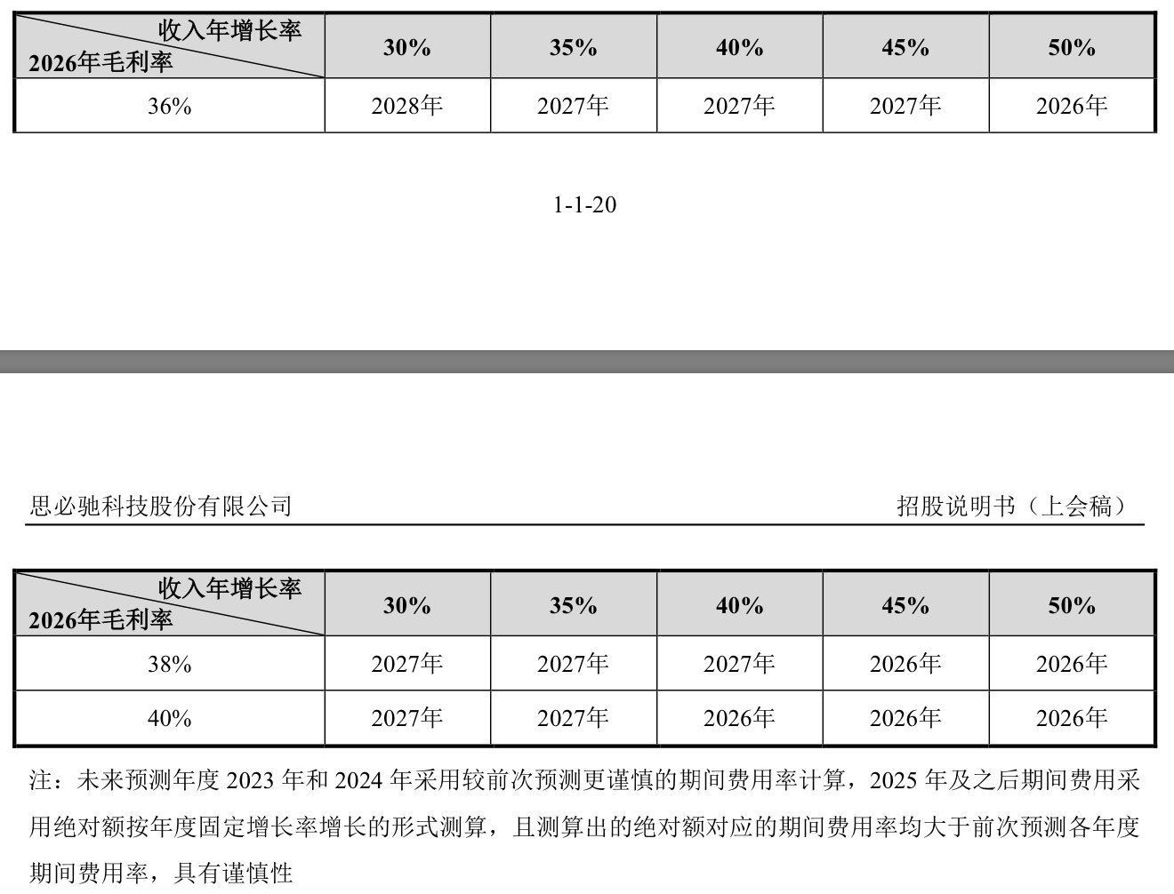 - 当2023-2026年营业收入年增长率为35%,公司综合毛利率为36%-40%的情况下其实现盈利的年度预计为2027年;