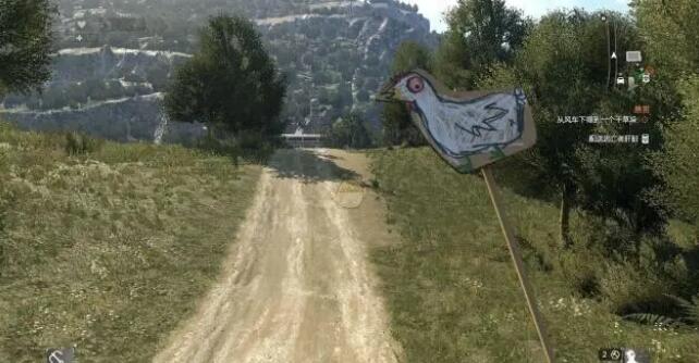 游戏世界遍布小鸡涂鸦,甚至于如果在游戏里集齐15块石头,放置在特定地点,游戏中所有的军用吉普上就会出现小鸡贴纸,这算是对《龙珠》致敬的恶搞版吗?