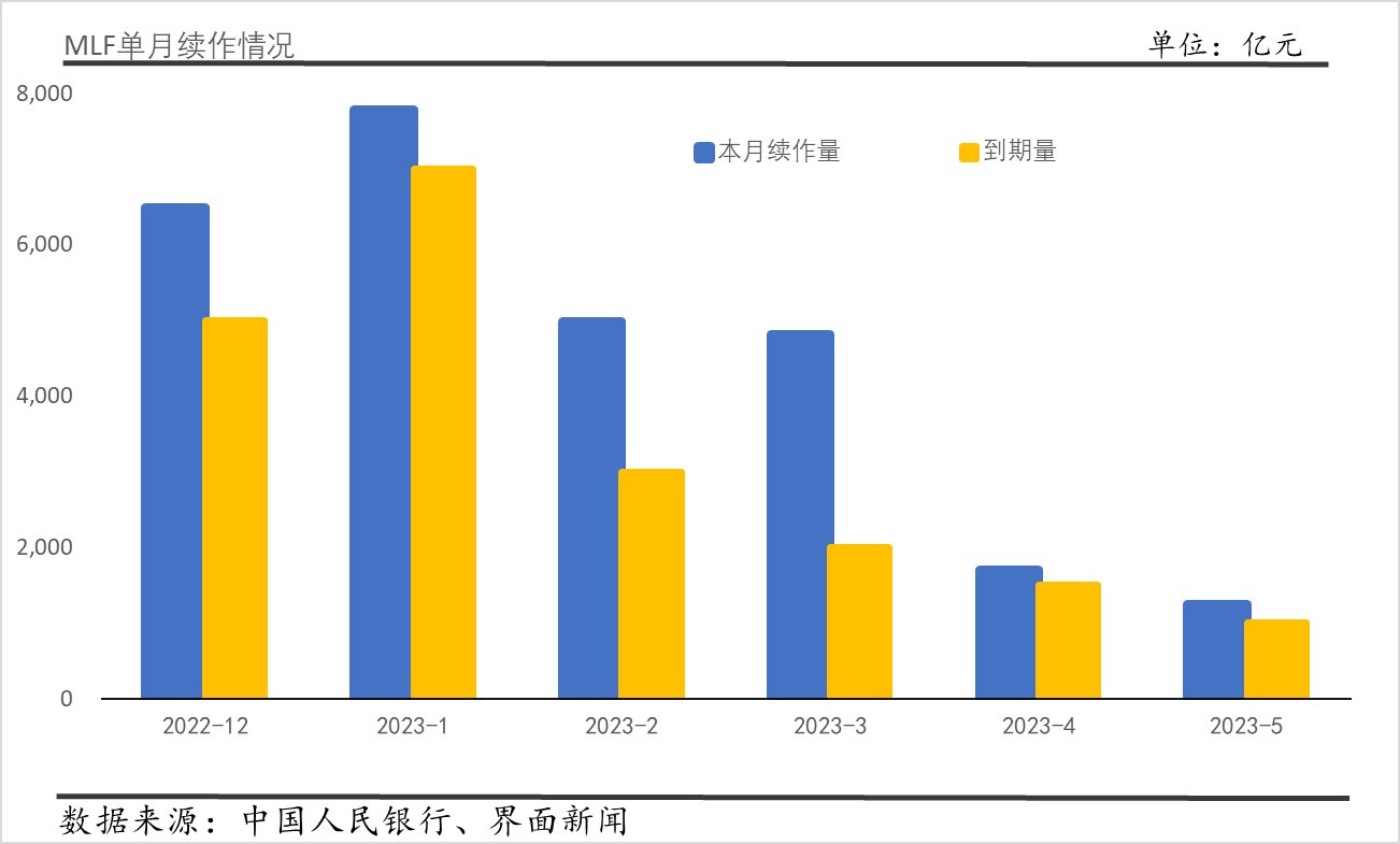 这是央行自去年12月以来连续第六个月超额续作MLF,超额量比上月扩大50亿元,但依然维持在较低水平。分析师表示,一方面,企业对中长期资金的需求依然较强,另一方面,4月信贷投放节奏明显放缓,导致银行对MLF需求减弱,因此,央行通过MLF操作大幅“补水”必要性下降。