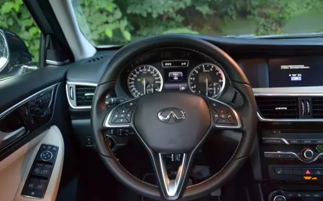 在内饰部分,QX30跟GLA的风格有些许不同。QX30的内饰配色和用料更为考究,车内大面积采用了皮革包覆。三幅式多功能方向盘和非对称式中控台与运动定位十分相符,而且仪表盘和方向盘很明显有奔驰的影子。除此之外车内很多组件都是和GLA共用的,比如车窗控制组件、座椅调节按钮甚至车钥匙等等。当然中控系统是INFINITI In Touch,7英寸显示屏是内嵌式设计。