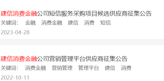 建信消金发布的招标信息