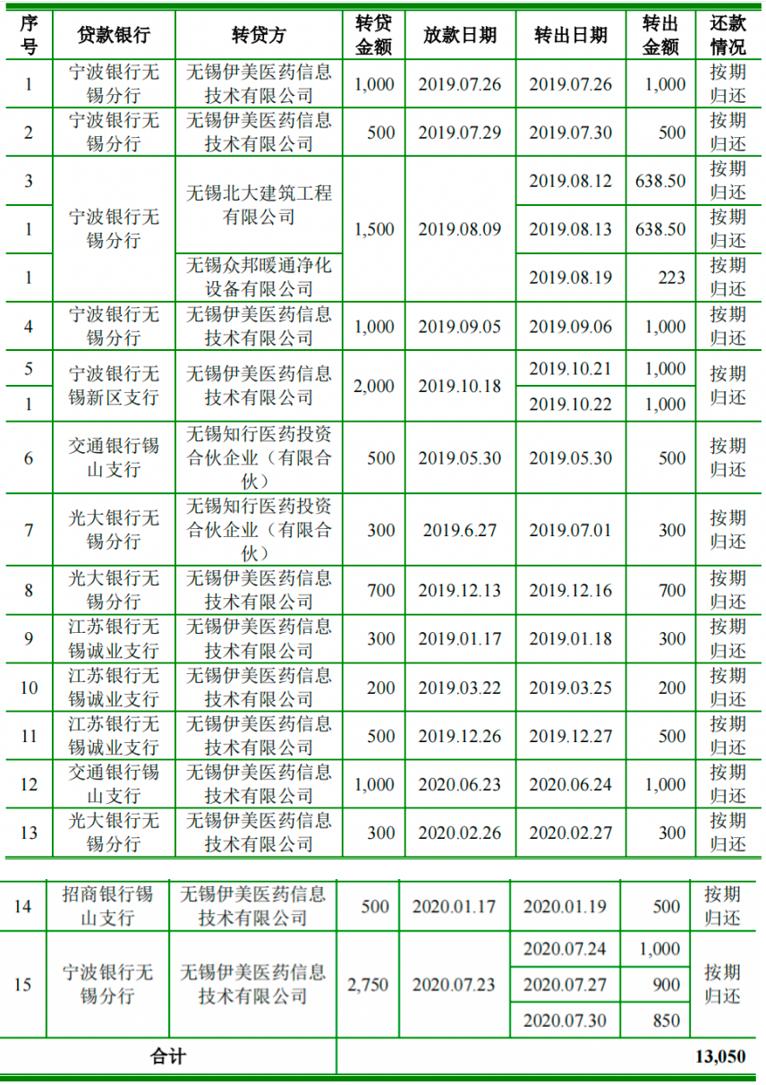 值得注意的是,知原药业多次与无锡伊美医药信息技术有限公司(以下简称“伊美医药”)进行“转贷”,但是知原药业并未在招股书中介绍与伊美医药的关系,若伊美医药与知原医药并没有业务上往来,这样的“转贷”是否合规,还需知原药业进一步解释。