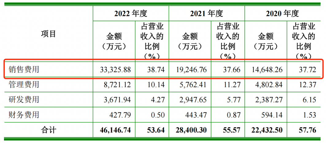 招股书显示,报告期内,知原药业的销售费用分别为1.46亿元、1.92亿元和3.33亿元,占当期营业收入的比例分别为37.72%、37.66%和38.74%,远远高于研发费用。