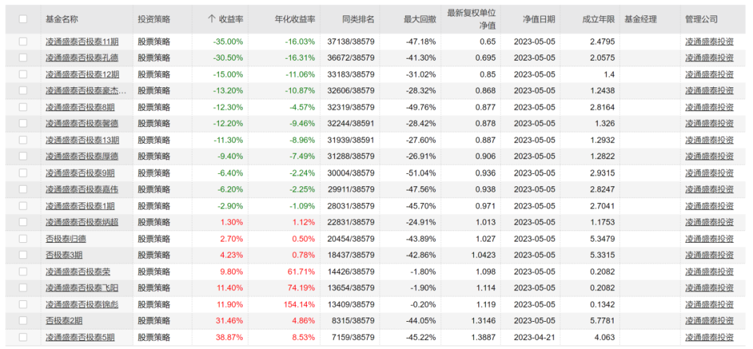 但逆着大势坚守银行股的结果就是,必须面对来自投资者对业绩的审视。董宝珍所管理的“否极泰”系列私募产品,超过半数自成立至今仍处于亏损状态,最高的净值跌去35%。