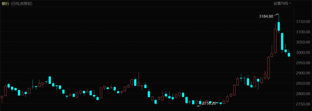 其实过去数年间,银行板块也不是没有出现过领涨A股的情况,只是通常涨上一天便会回调回去。上周也是如此,银行板块指数在5月9日至12日期间连续下跌,目前已经3184.80回调至2977.65。